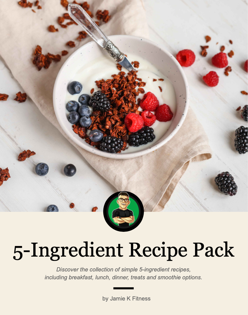 Your go-to 5 Ingredient Recipe Pack with over 80 pages to discover the collection of simple healthy recipes including breakfast, lunch, dinner, treats & smoothies