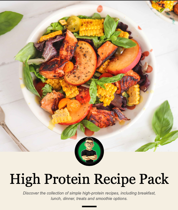 Your go-to High Protein Recipe Pack with over 80 pages to discover the collection of simple healthy recipes including breakfast, lunch, dinner, treats & smoothies